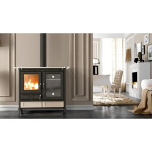 Il THERMOROSSI Margherita Evo è una cucina a legna di alta gamma che unisce tradizione, tecnologia avanzata e un design robusto ed elegante. Realizzato in ghisa e acciaio con rivestimento ceramico di pregio, questo modello è pensato per chi desidera un apparecchio capace di riscaldare l’ambiente e allo stesso tempo offrire una vera esperienza culinaria a legna.